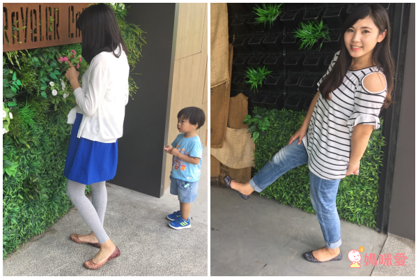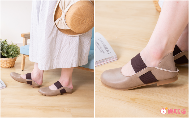 媽咪們看到這雙鞋子的玄機了嗎?沒錯!就是娃娃鞋&拖鞋兩穿!(Model平時尺寸24.5,本雙著用L,適中舒服!)