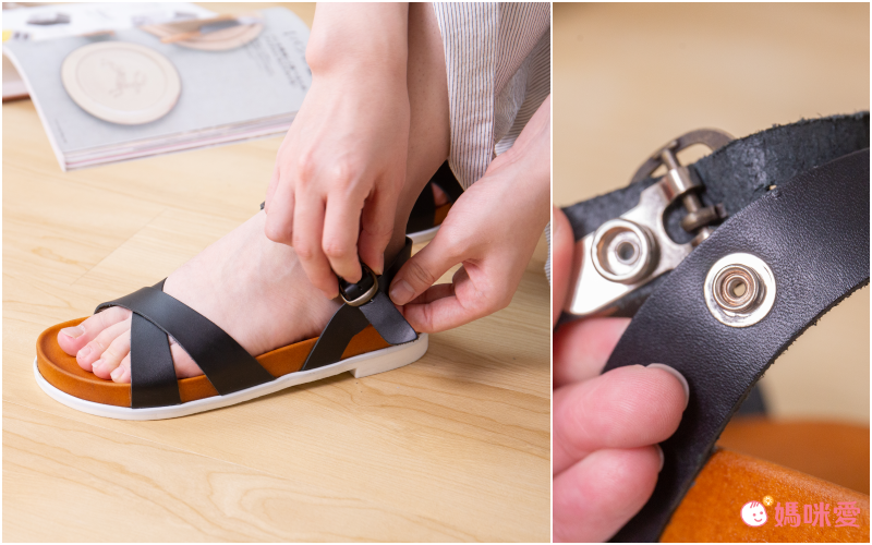 布料的部分也很柔軟,穿起來不會太硬一直磨到腳~綁帶也有打動可以調整長度喔!