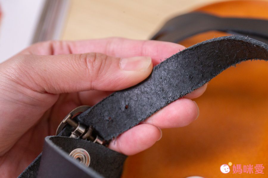 他是釦子設計,而且還有貼心的鐵片協助穿脫!
