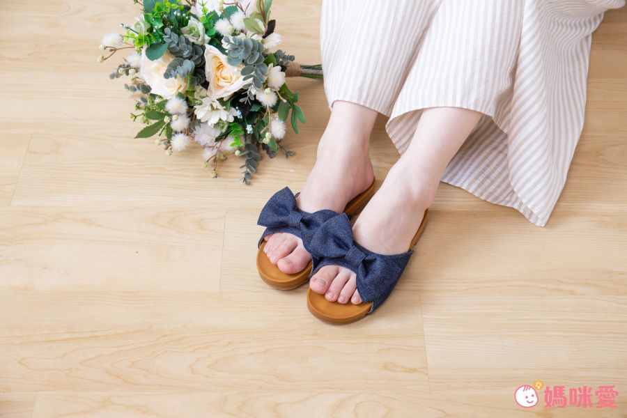 Model平常都是穿 23.5cm 的鞋,所以這款選了 L 號(23.5cm),長度OK,但因為本身是肉腳所以寬度較窄,不過還是挺舒適的不會到很痛不舒服的程度!因為日本鞋版型偏小,所以建議媽咪們可以選擇比平常大一號的尺寸,會更舒服喔!