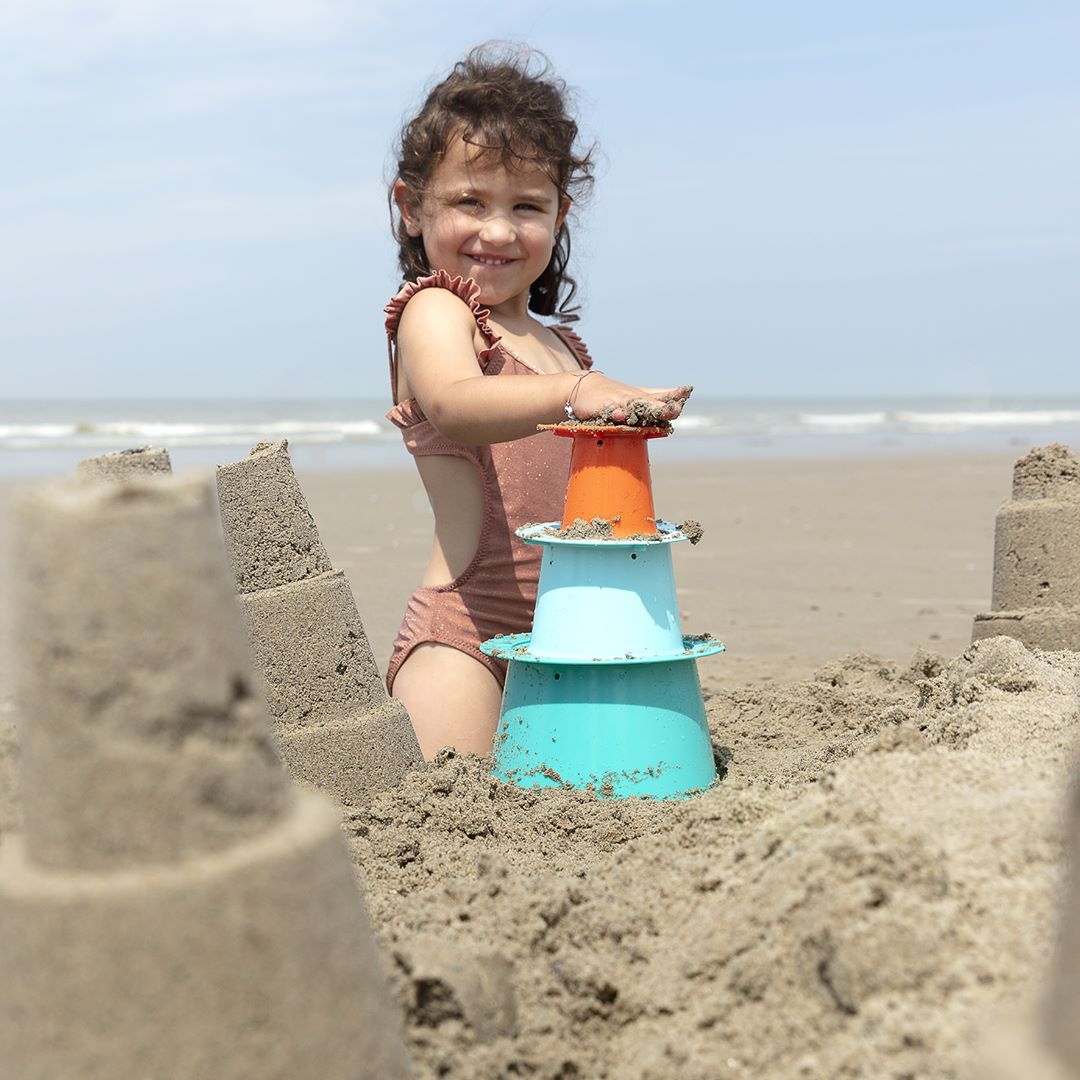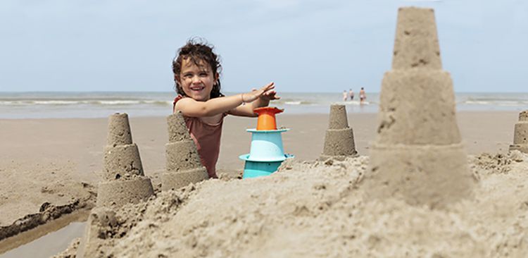 到海邊孩子都會想蓋座美美的沙堡,但沒有工具輔助,孩子要堆疊沙堡其實很費力,QUUT 為此研發的金紫塔模型,只要填充沙子就能輕鬆蓋出一座堅固又漂亮的沙堡!給孩子滿滿的成就感。