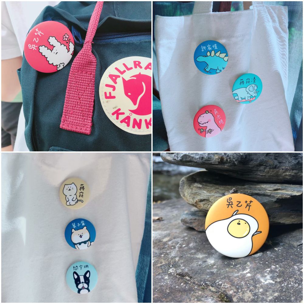 別針和燙布可以任意加在自身的包包或衣物當作裝飾,加上名字更可以讓自己的物品不容易被別人拿錯喔~