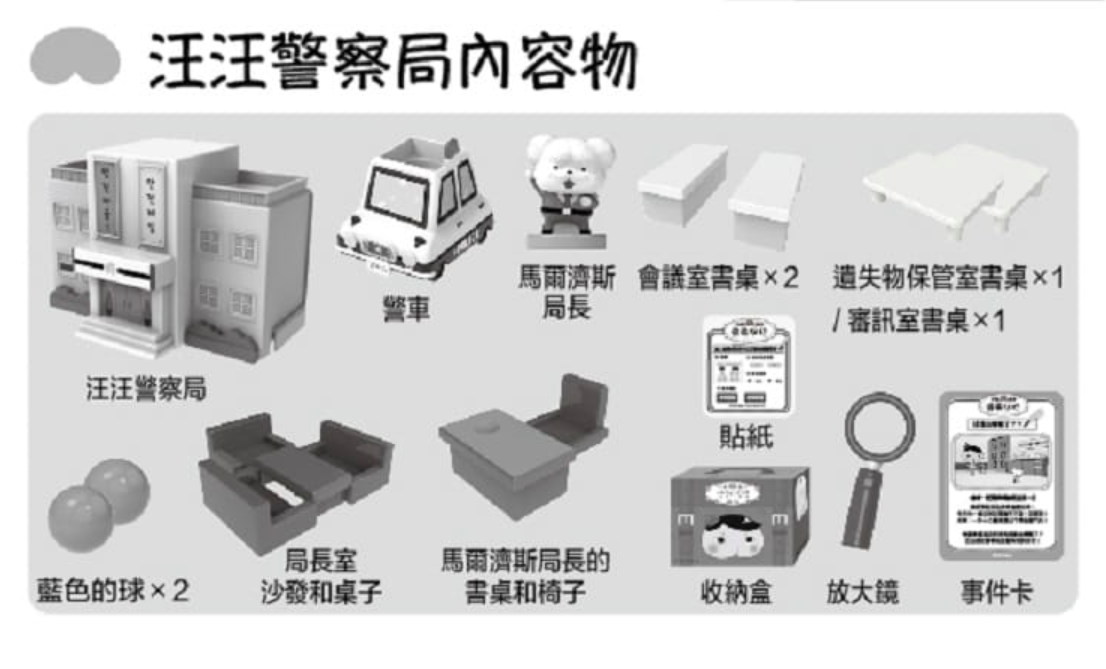 另一組遊戲屋也是經典的汪汪警察局,解謎主題是,幫對圓圓的球狀物毫無抵抗力的馬爾濟斯局長,找回心愛小藍球。(提醒媽咪開箱文中遊戲屋出現的公仔僅供參考,遊戲屋實際內含公仔數量及款式,請以文章裡的商品規格圖片為準)
