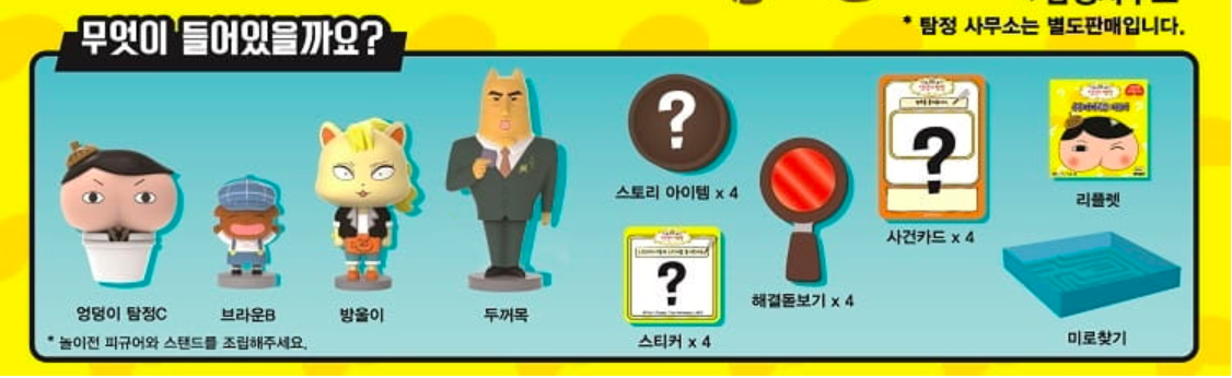 屁屁偵探公仔組,裡面有附謎題事件卡和特殊的放大鏡,一包就可以玩一場有趣又簡單的解謎遊戲,也可以搭配遊戲屋一起玩~