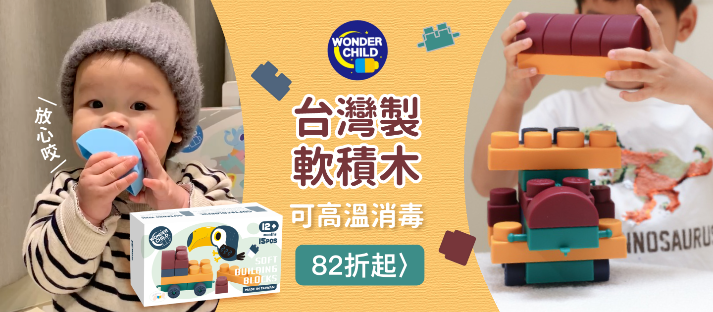 一般積木堅硬,體積小容易誤食,因此 Wonder Child 軟積木,專為寶寶設計了大體積軟積木,軟 Q 有彈性可扭轉 ,耐咬又耐摔!