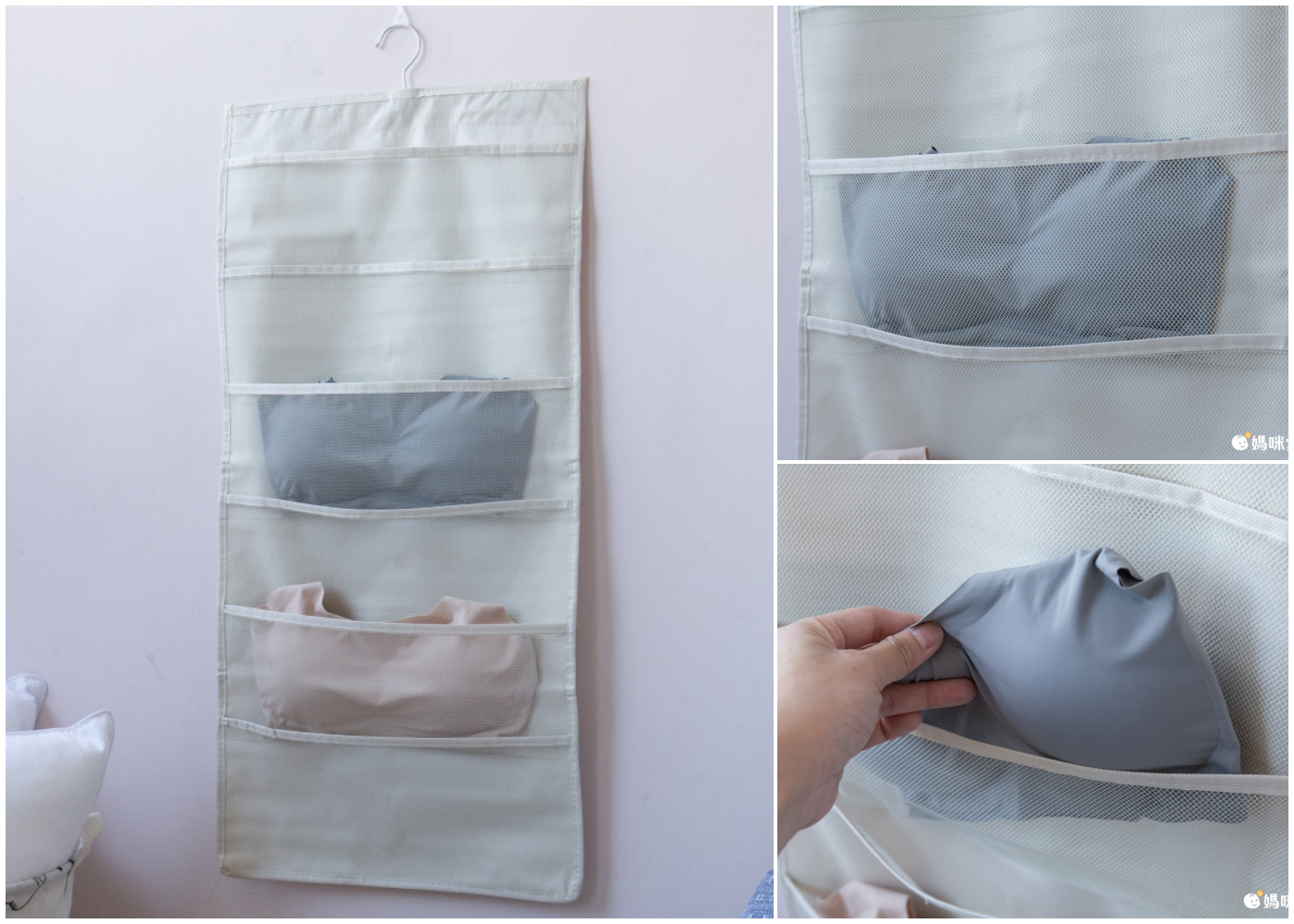 女生有時內衣的收納其實真的蠻佔空間又麻煩的。有了這個掛式的收納網,一目了然的能看到款式外,放入和拿出來也都很輕鬆~
