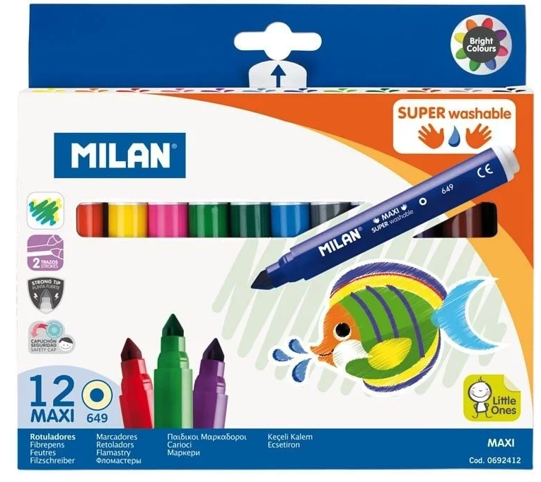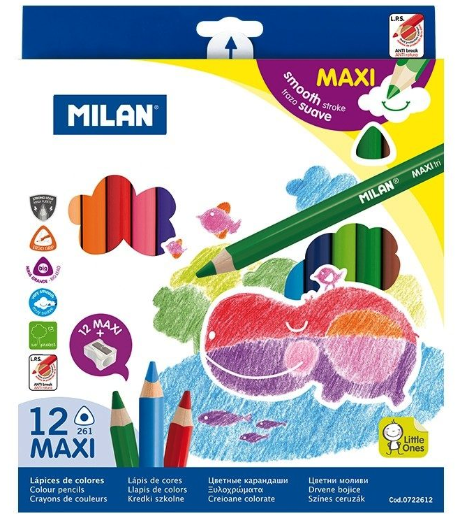 12 種色鉛筆,MILAN 特別選用強化筆芯,採用 L.P.S 防斷保護設計,比一般色鉛筆的抗斷裂性更強!很適合還不太會掌控手部力量的孩子使用,色澤也很飽滿好上色。