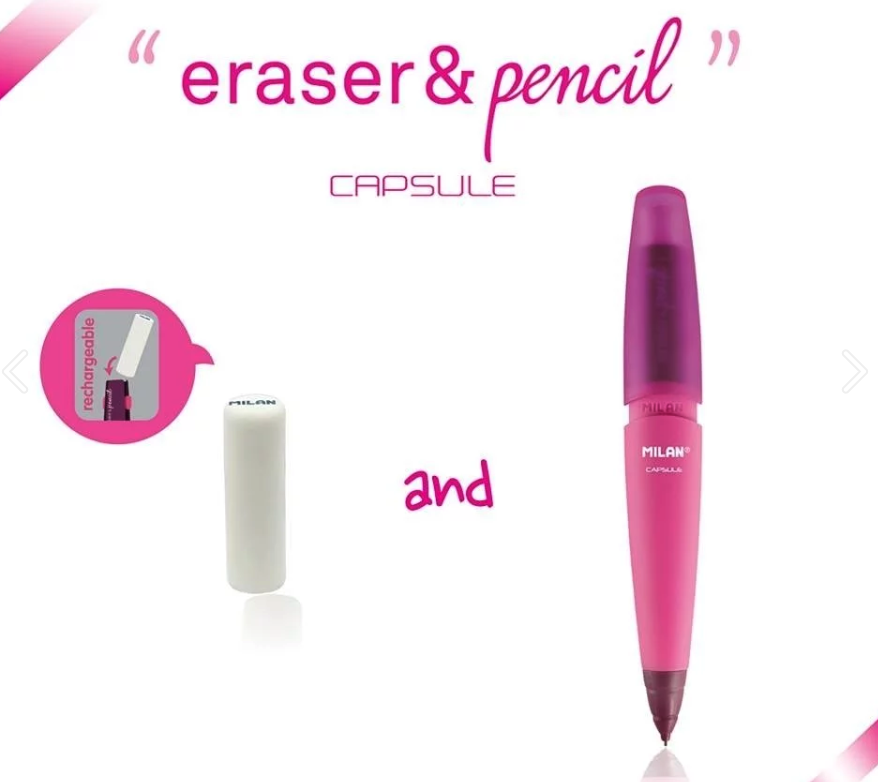 接下來要介紹經典的橡皮擦,MILAN 是世界頂尖的橡皮擦製造商!特別推出了外型宛如太空膠囊的橡皮擦,還有超聰明的二合一設計!馬上來看介紹