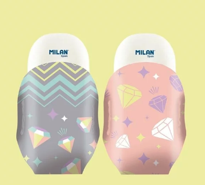 外型看起來就像太空膠囊的MILAN橡皮擦,童趣可愛的外型深受孩子們的喜愛。打開下方的蓋子,還有雙孔削鉛筆機可以使用!粗孔和細孔兩種鉛筆都能輕鬆削尖。盒蓋還可以用來裝鉛筆屑,很實用!