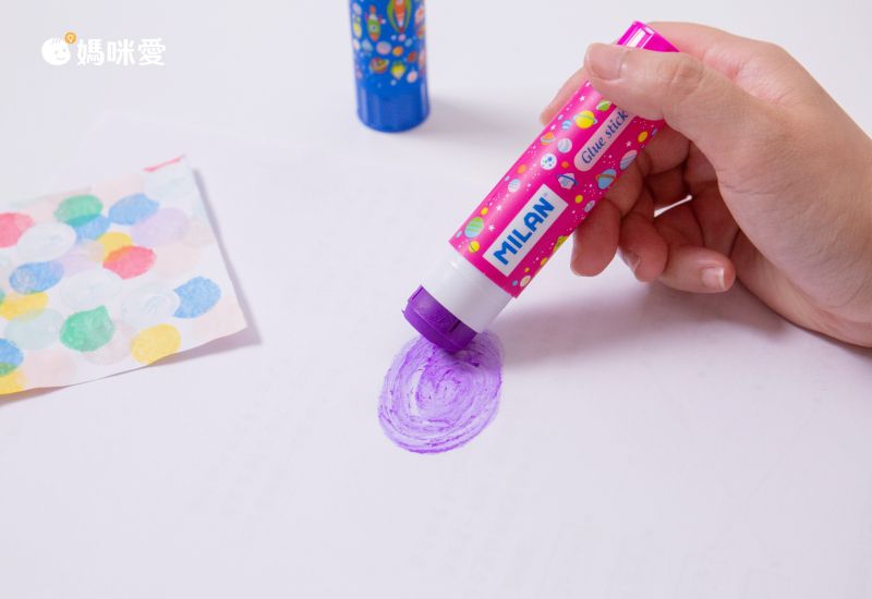 MILAN 口紅膠塗出來是有顏色的,方便孩子確認塗抹的範圍,非常貼心~