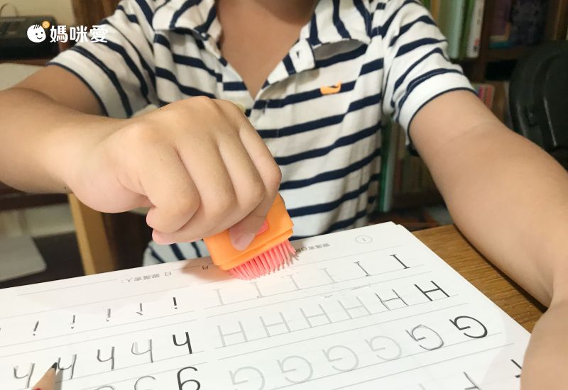 人體工學的圓弧外型設計,還有大拇指凹槽,讓孩子的手抓握擦拭起來,非常好使力。