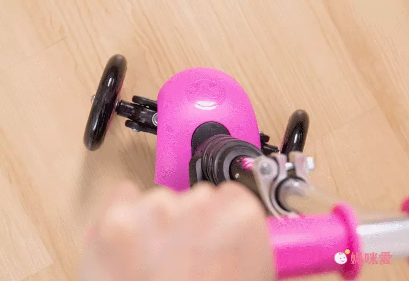 Yvolution GLDER 滑板車的車頭可以左右轉動,讓孩子練習操控方向,利用身體重心側傾就可以輕易控制轉彎和行進方向,這部分對孩子來說也很輕易上手。