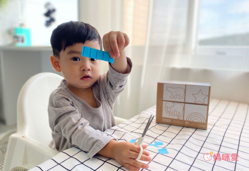 子惟對剪紙很有興趣,剪工盒很貼心的從簡易到複雜的紙張圖案,子惟自己獨自剪了快一個小時的紙,用力推一下讓媽咪鬆一口氣可以休息一下的剪工盒!