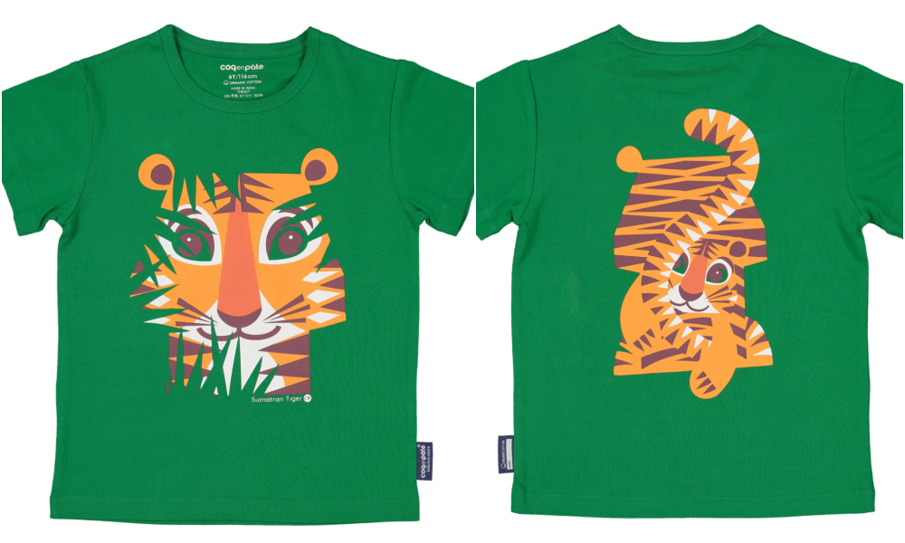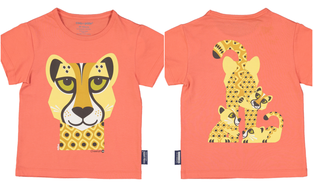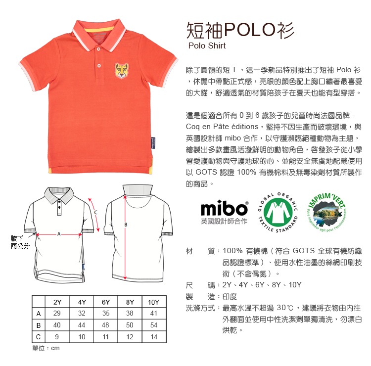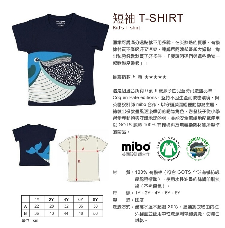 整件衣服都是使用有機棉,除了布料柔軟透氣之外,連圖案都是使用環保無毒染劑印製,印製圖案處與有機棉結合為一體,沒有印製圖案的凸起感,穿上COQ EN PÂTE 有機棉T就是舒適、透氣、吸汗跟可愛。