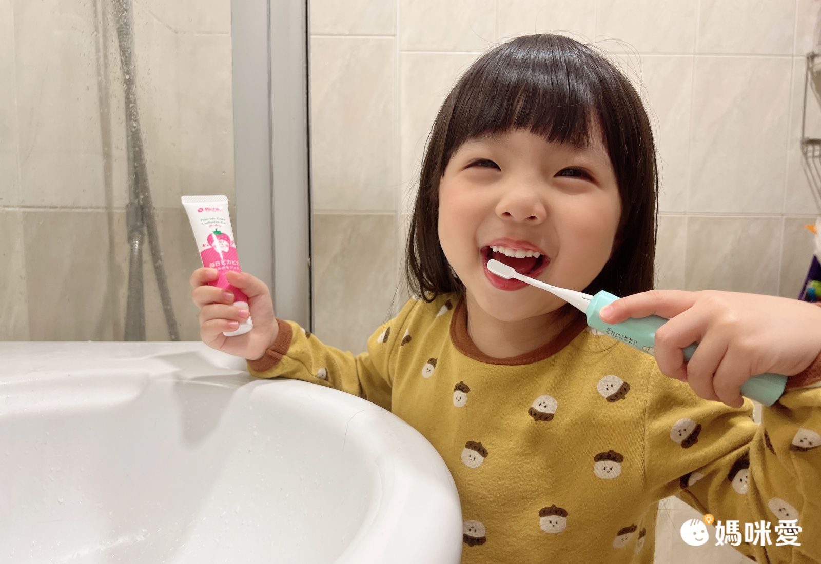 而璇姊目前3歲8個月,已經很習慣刷牙了,一直都是讓她使用水果系列的牙膏,適應得蠻好的。但有次朋友送了個含氟水果牙膏,結果因為太涼璇姊嚇到,只用一次就不敢再用了QQ所以一開始我擔心她會害怕使用,所以先讓她聞聞味道,可以接受後才讓她使用草莓口味
