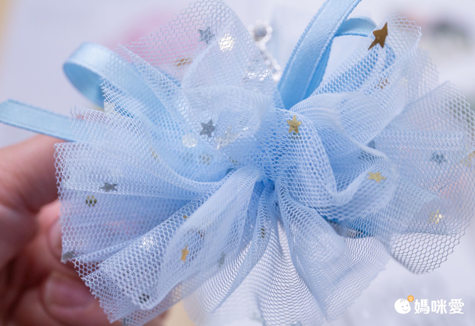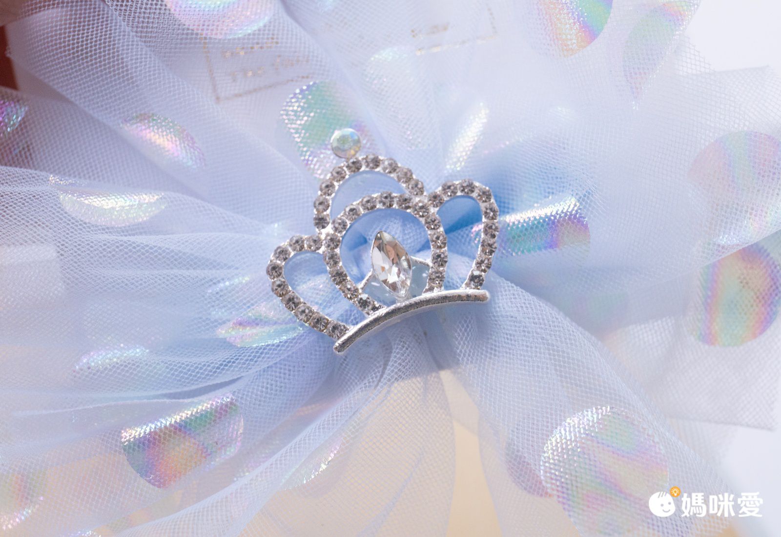 層層堆疊的網紗,圓圓、蓬鬆的外型相當討喜,大星星、小星星,加上皇冠上bling bling的水鑽,可愛中又帶點貴氣