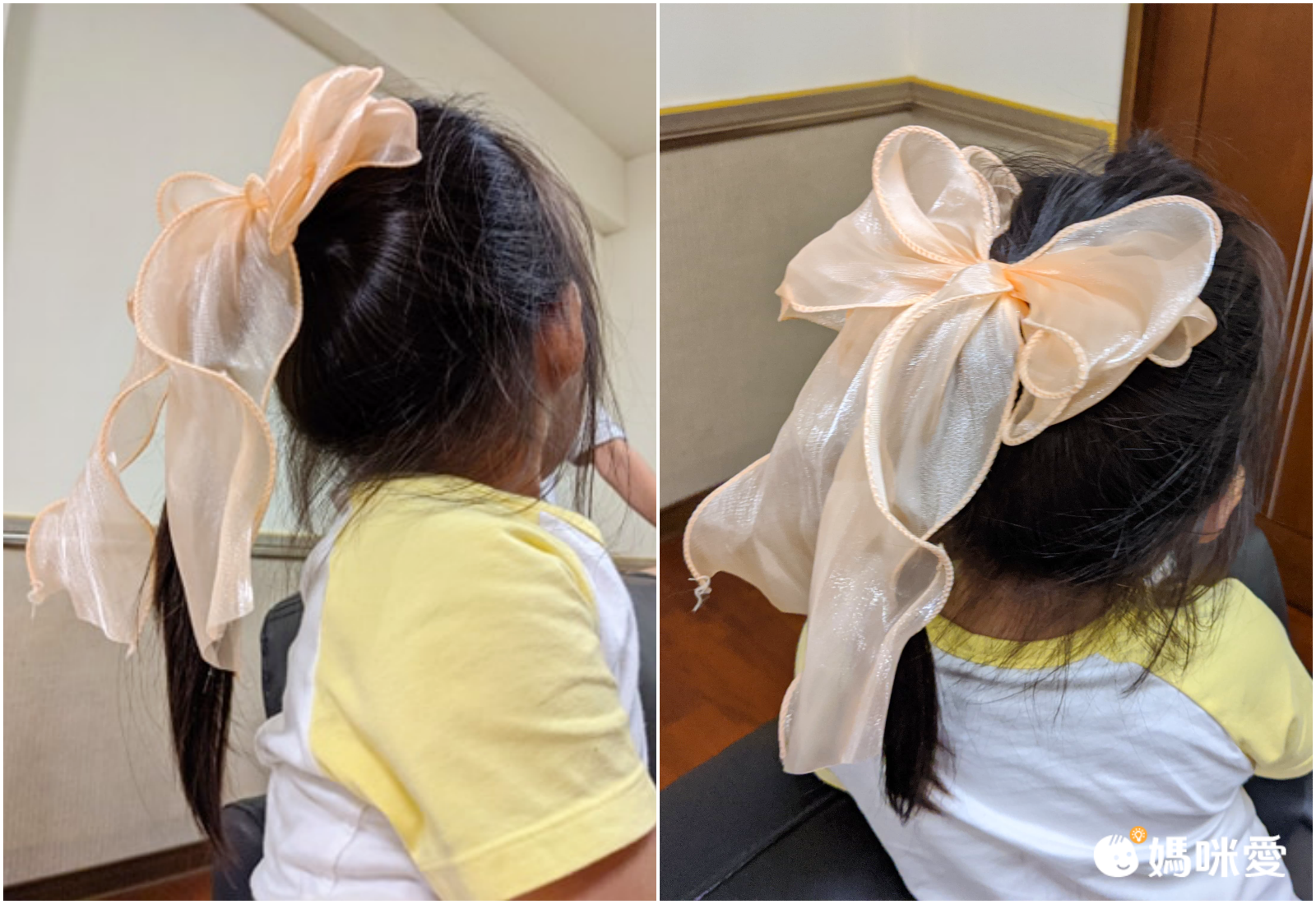 金絲材質非常輕,也能自行調整蝴蝶結大小,亮亮又不會太過