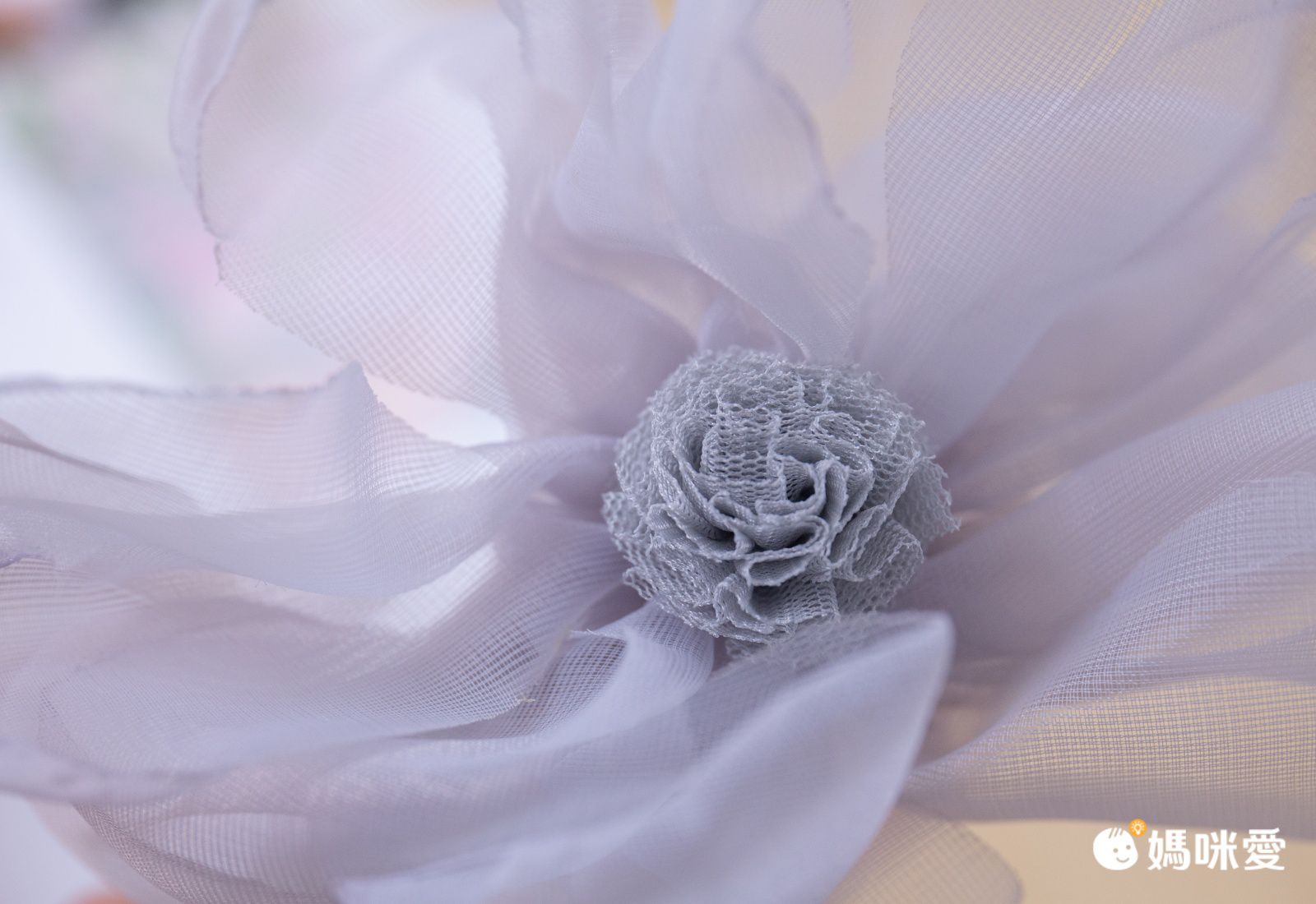 層層網紗柔和的收邊,加上中間可愛的蕾絲球,是相當柔美的花朵,喜歡層次感不那麼明顯的媽咪,可以入手這款