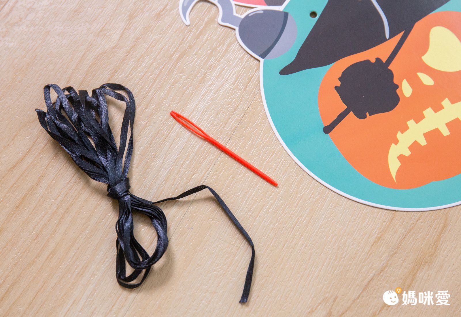 掛牌上已經有孔洞,還有副粗針,像縫紉那樣穿過就好囉!而且粗針的洞很大,不用擔心線穿不過