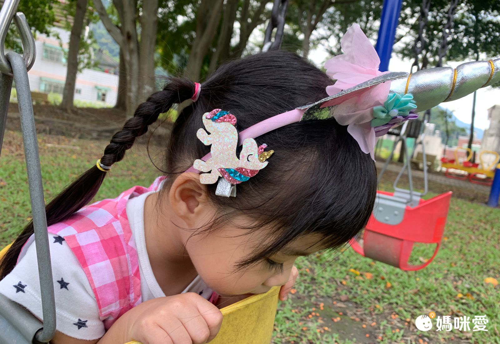 看這人間獨角獸~太可愛了啦!一旁搭配髮夾固定也很萌欸