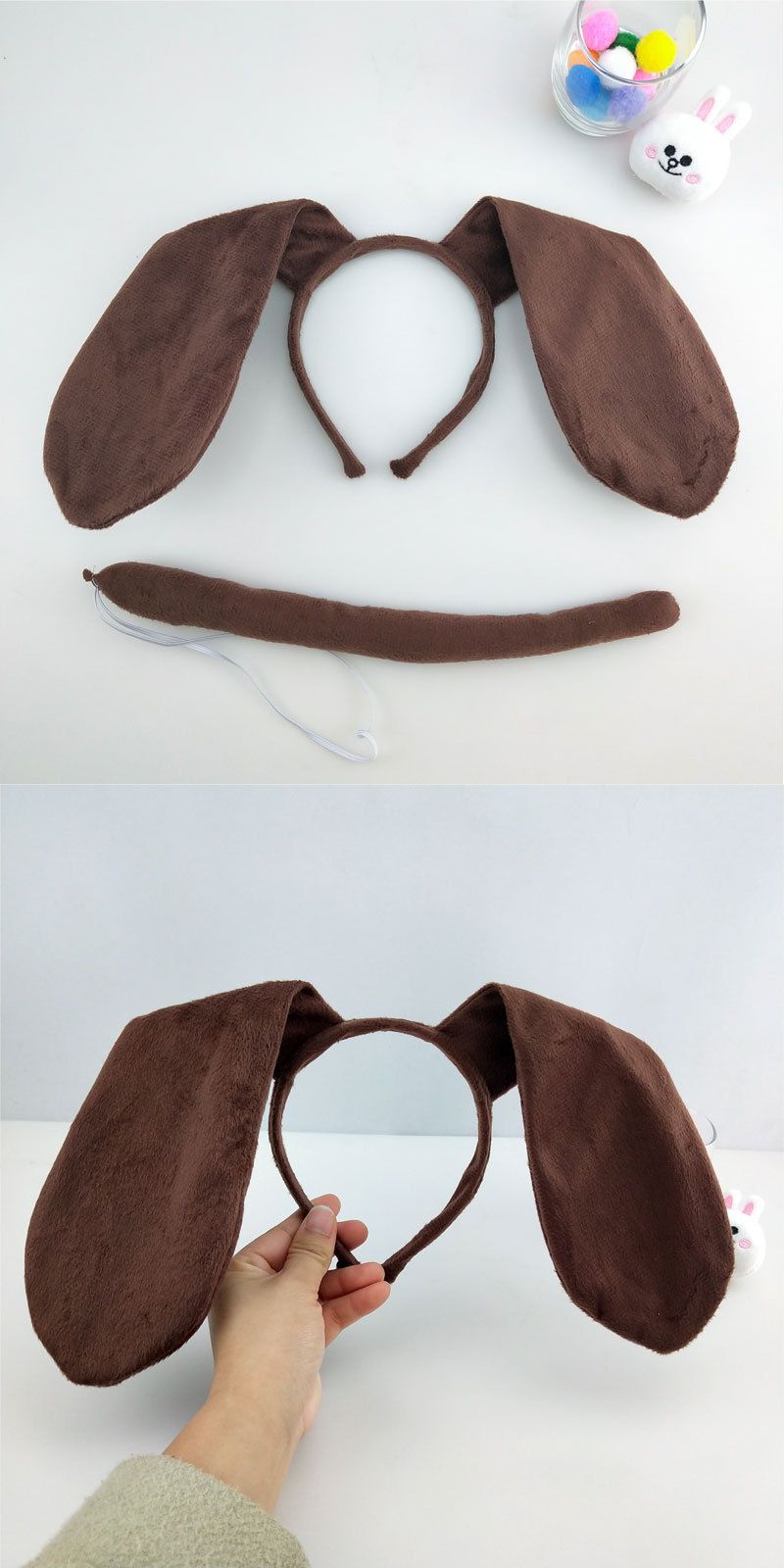 尺寸:耳朵:內寬:11.5cm、耳朵長:8cm、耳朵寬:5.5cm、角:直徑2cm、高8.5cm,領結:長12cm、高6.5cm,尾巴:40cm