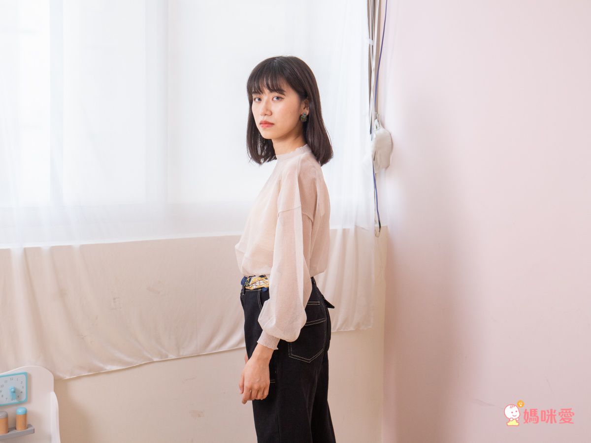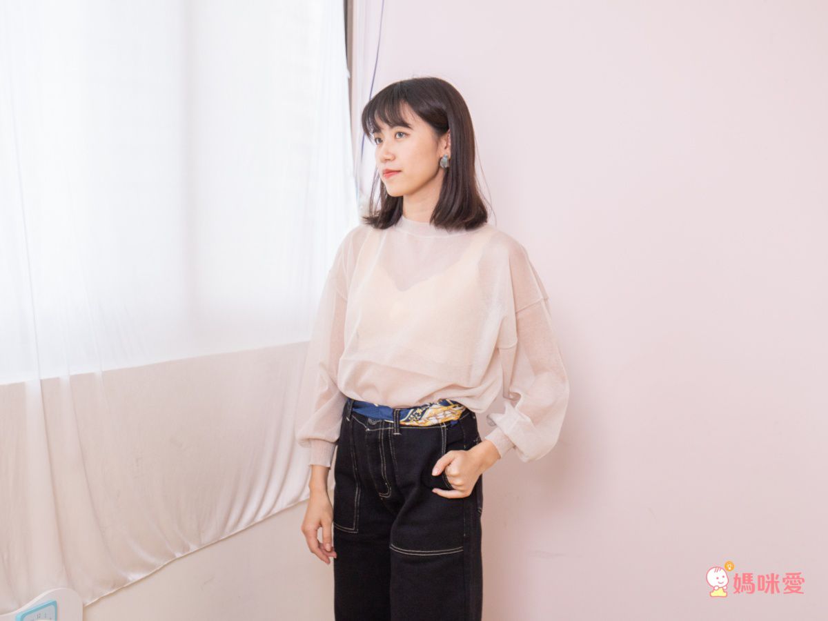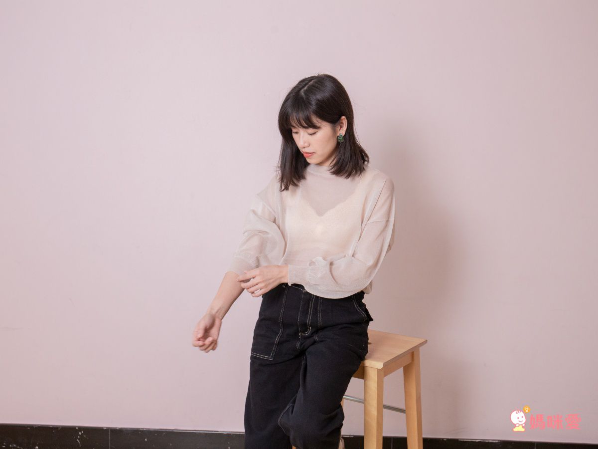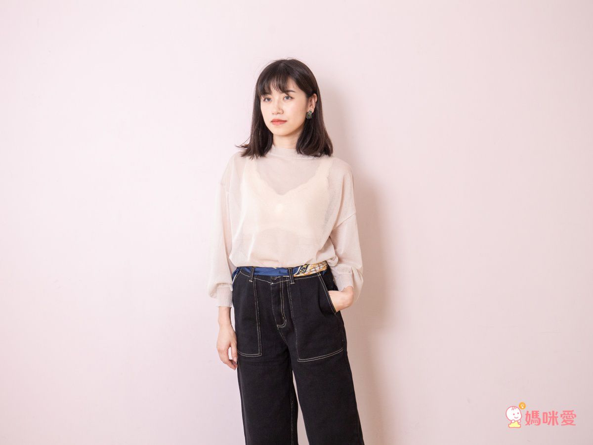 下半身簡單配褲子就OK,看起來滿滿的青春時尚,誰說當媽後就不能穿得像少女一樣的!
