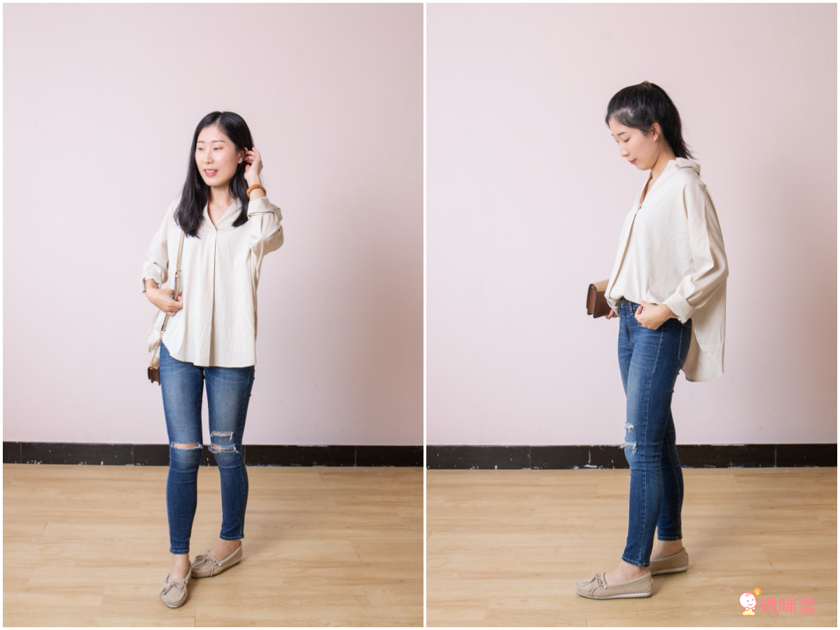 編媽最愛的穿搭法就是把袖子捲起來,看起來比較幹練