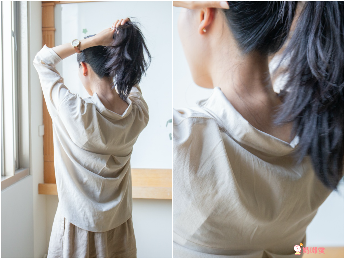 看一下這個領口的弧度有多好看!有線圈的固定就算是動作很大,或者是隨便動領口也不會皺起來亂跑啦,超方便的!
