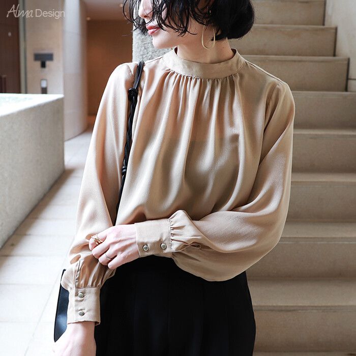 這種亮亮的緞面上衣,只要簡單穿就有優雅高貴感,都會時尚女性衣櫃必備