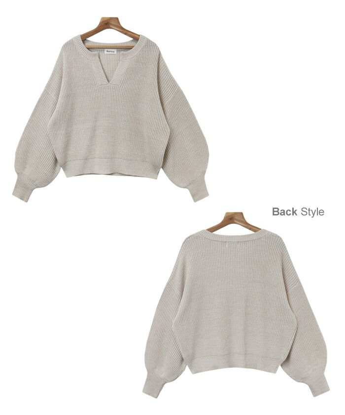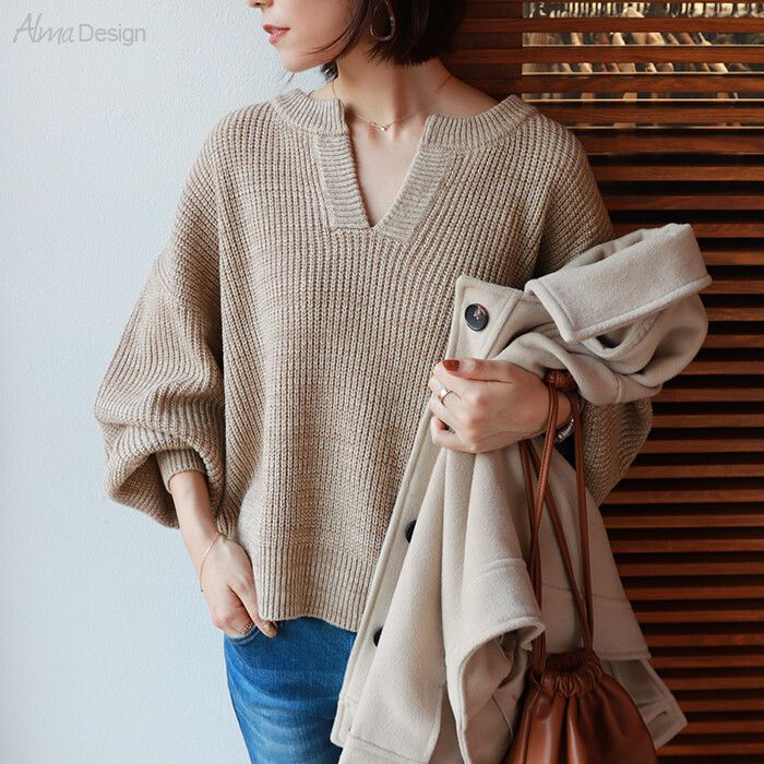 這件寬鬆的針織毛衣真的超可愛的~領口的V領能讓鎖骨露出來~脖子看起來又細又瘦的