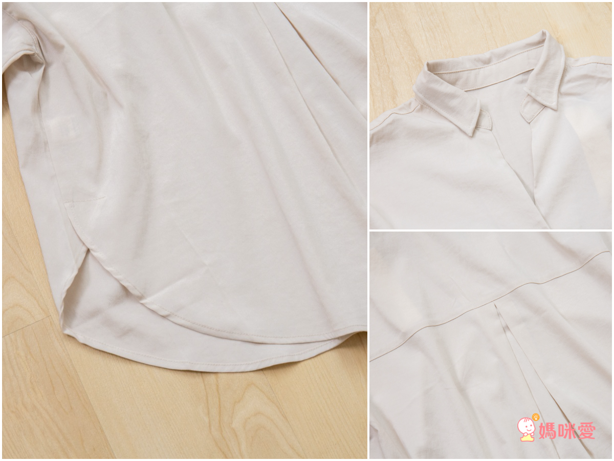 衣襬是做圓弧型的設計,領口開V開的洽到好處,害怕會太曝露的媽媽裡面可以直接搭配細肩帶背心