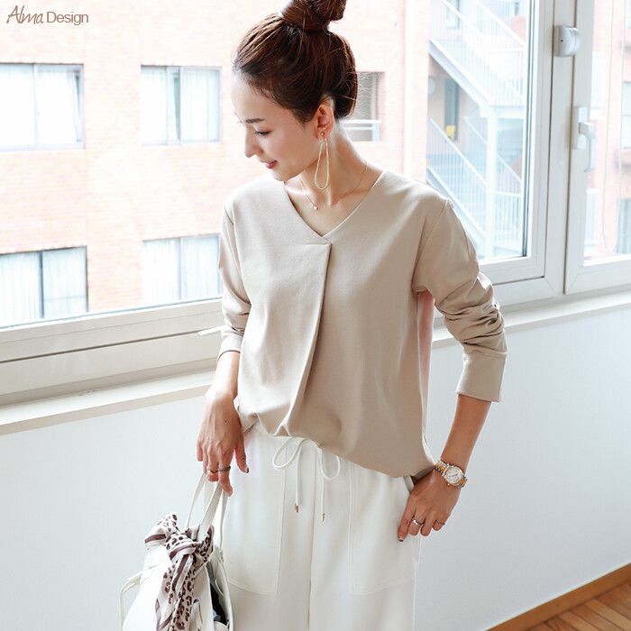 不管是配褲子還是長裙都很適合~微涼的秋天,再搭配一件薄外套剛剛好!