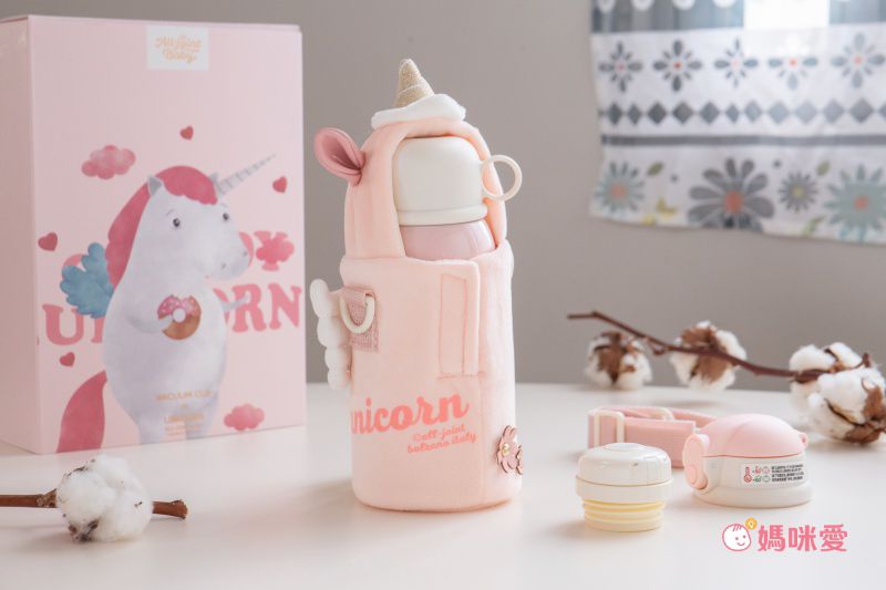 除了水壺本身,還有獨角獸的水壺套,一整組搭配起來真的好可愛!