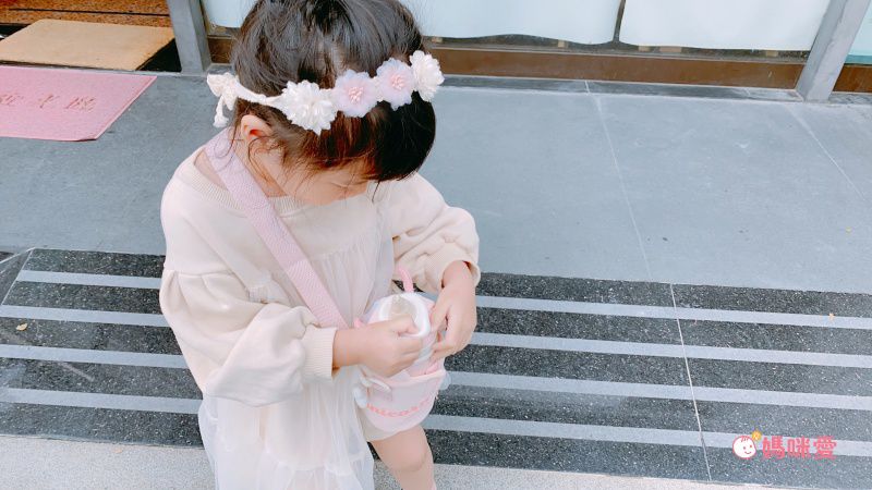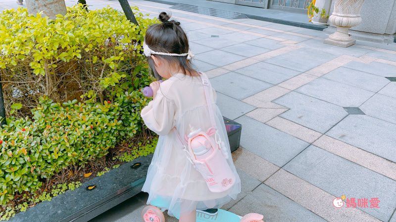 興奮地找出家裡同色系的外套和平衡車,火速整裝立刻出門蹓躂!不小心默默地~融為一體了!沒關係,孩子願意開心喝水最重要了~