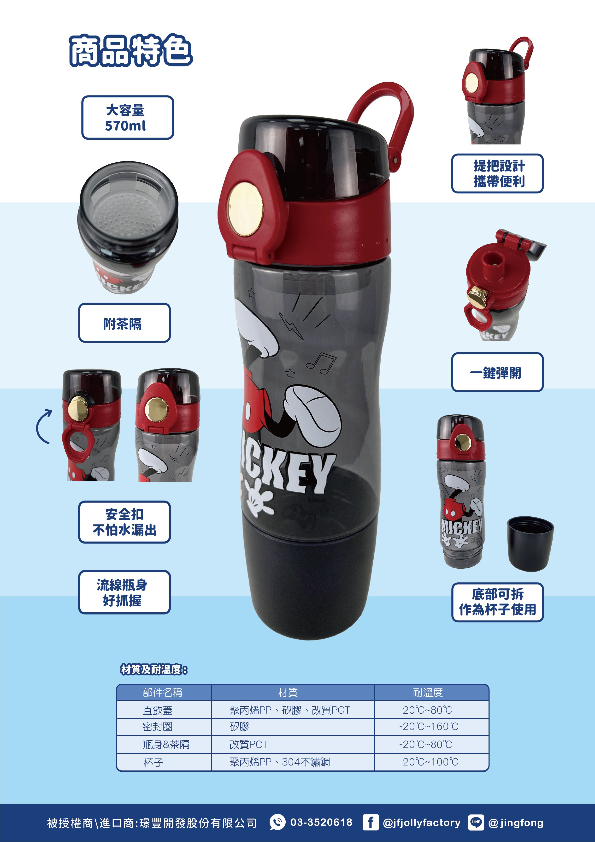 上方有安全扣設計,不怕水漏出來~使用彈開式的設計,一壓即開,很好上手!