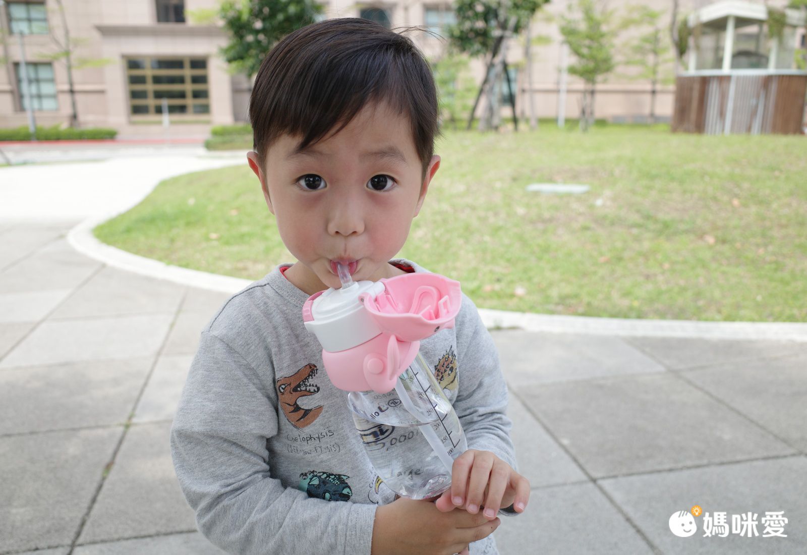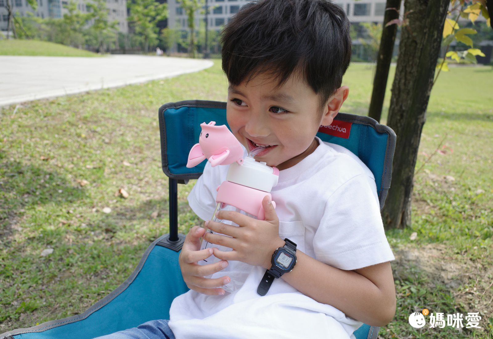 即使水壺容量大,但貼心的寬版背帶設計,讓寶貝自己背著水壺也不會不舒服!原本不愛喝水的孩子,在外面更能自動自發喝水,媽媽真的是超級感恩!