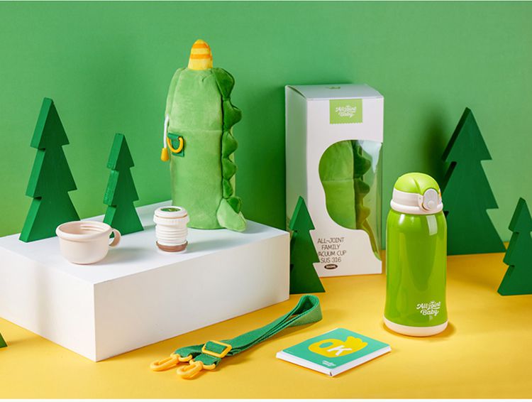 綠色小恐龍保溫水壺,恐龍背袋是毛茸茸的布料,質感很好,弟弟看到水壺完全愛上,走到哪都要抱著小恐龍呢!一直嚷嚷:『要好好保護我的小恐龍。』