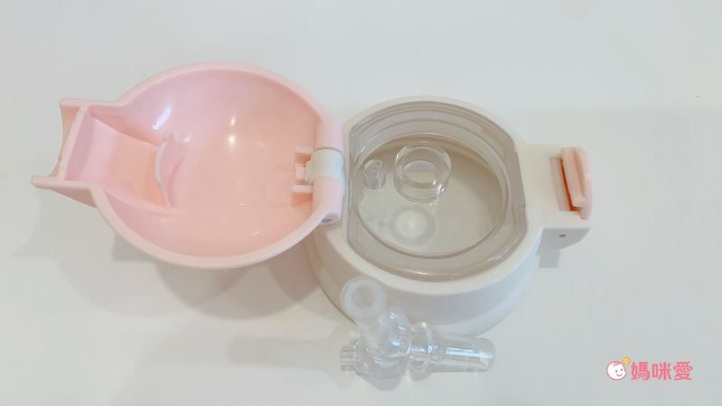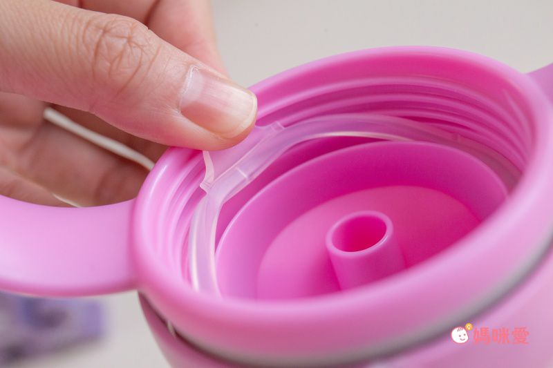 按下粉紅豬的豬鼻孔就能一秒開啟,一鍵開蓋加上吸管式的彈跳杯蓋,對3歲的艾迪來說也非常簡單