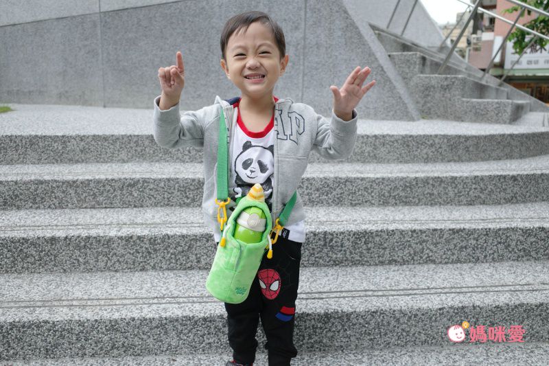 超級可愛的外型,讓啾比愛不釋手,水壺貼心的附贈了一條背帶,讓孩子走到哪都可以背帶哪