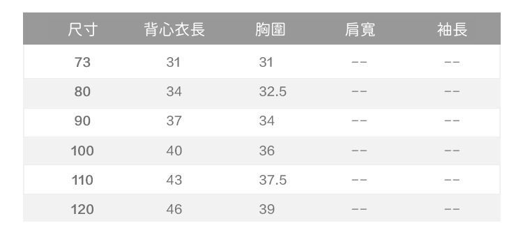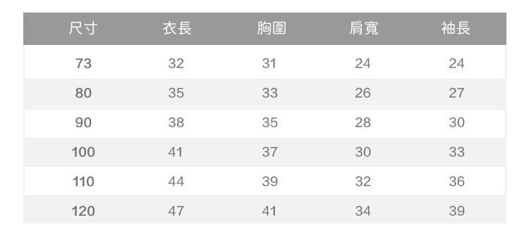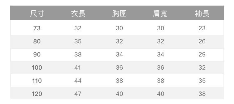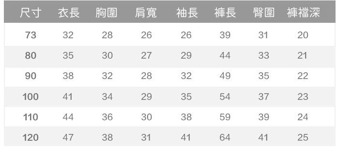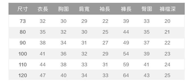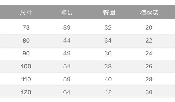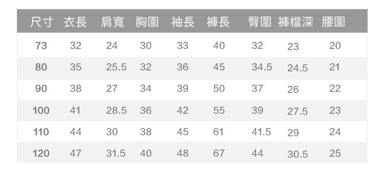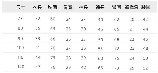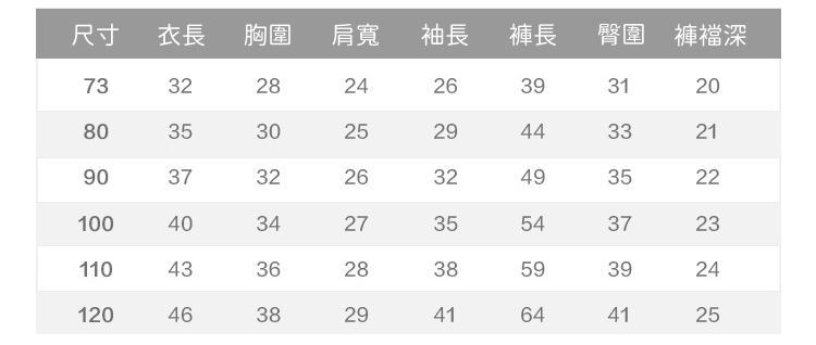 附上尺寸表給媽咪們參考