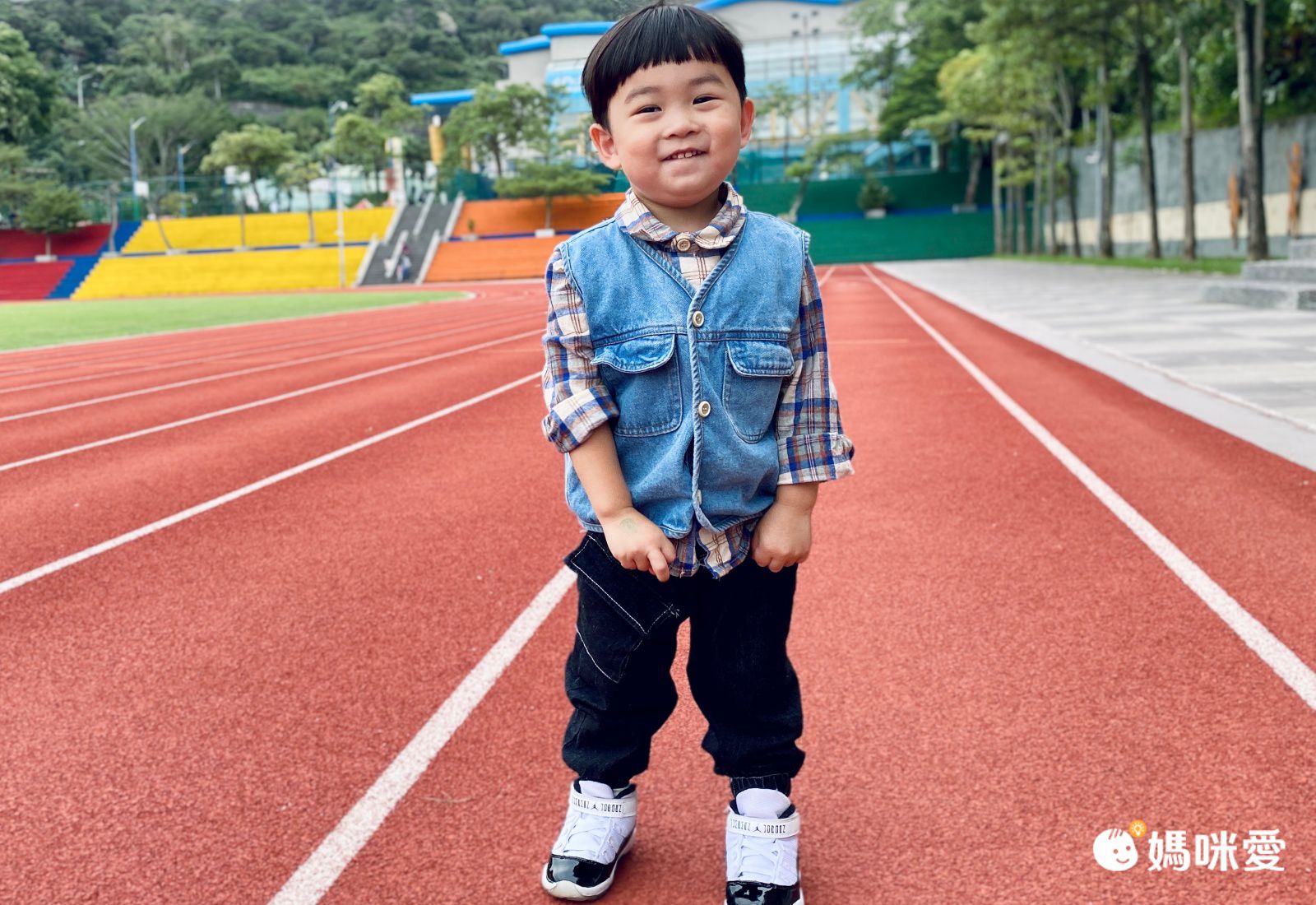 帶子惟去操場玩,換上別的褲子再加上運動鞋,也非常好看,呈現不一樣的感覺