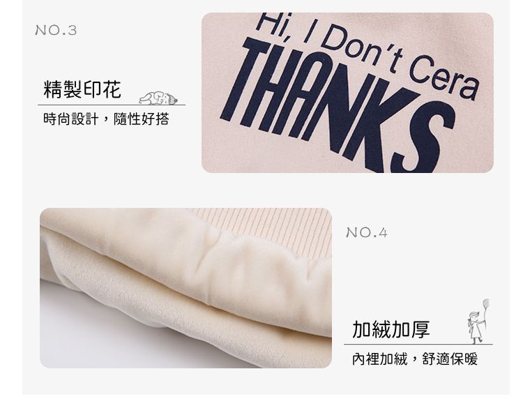 旁邊還有繡標點綴,充滿街頭時尚感,裡面是加絨設計,冬天直接穿也不會覺得布料冷冰冰