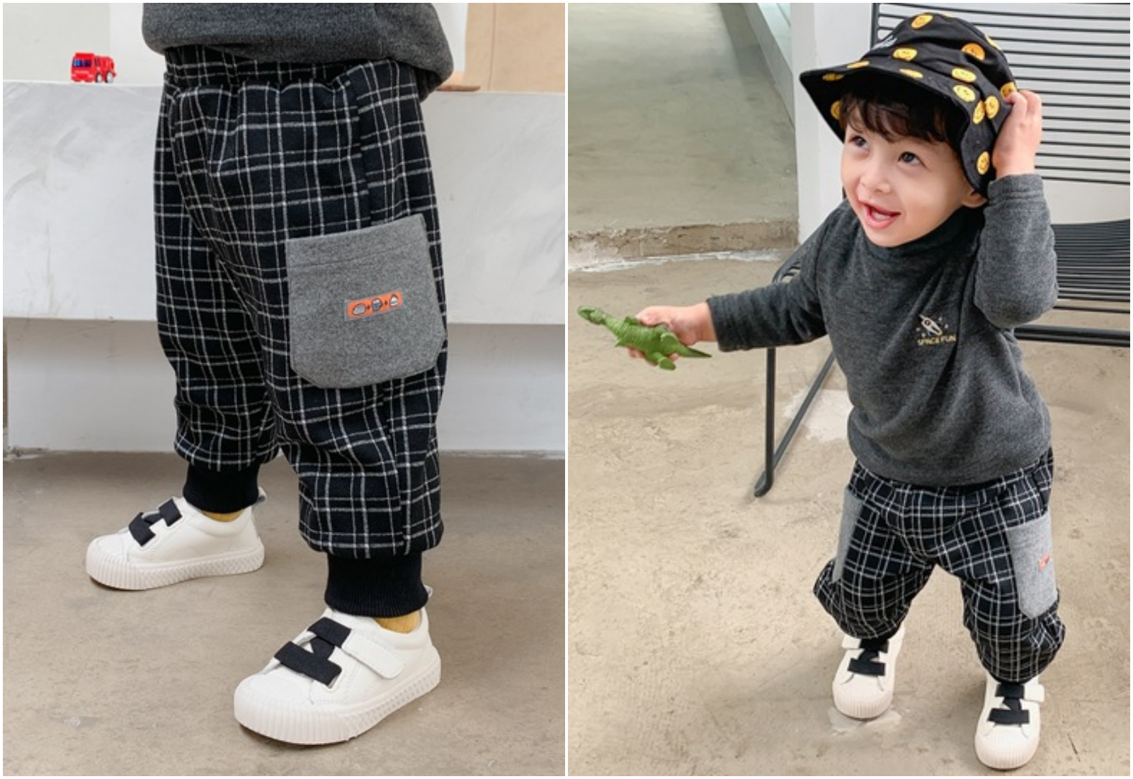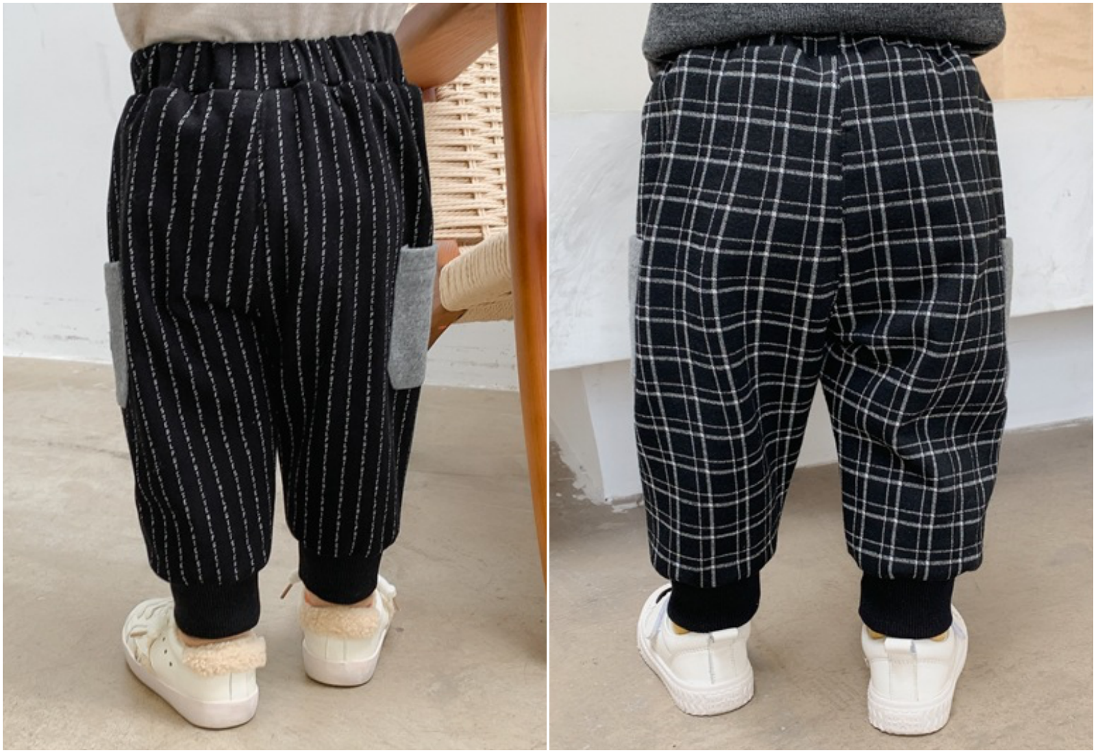兩款都是深色設計,不怕髒,條紋跟格子的設計,即使配上素色上衣也存在感十足