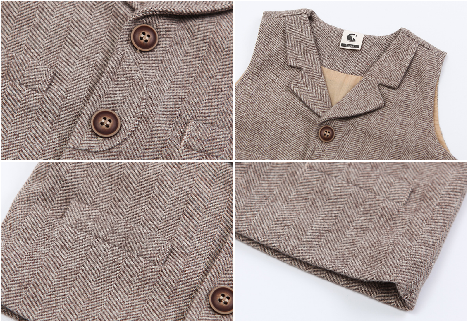 內裡純棉襯衫材質非常舒服,外搭磨毛人字紋的背心,兩顆扣子簡單大方,質感滿分,細節到位