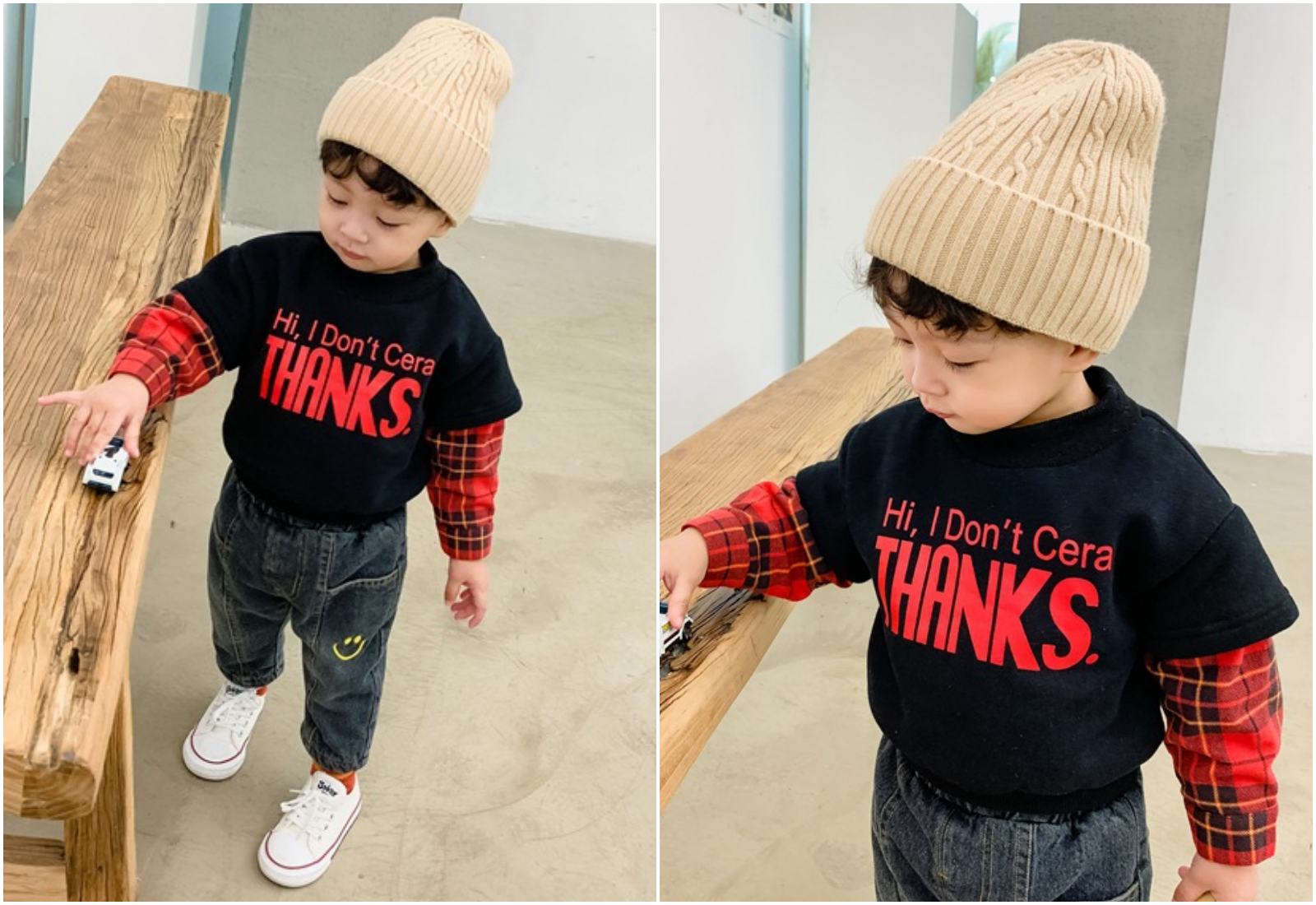 這件假兩件設計,兼具澎澎可愛的衛衣,還有格紋襯衫的百搭,輕鬆營造層次感