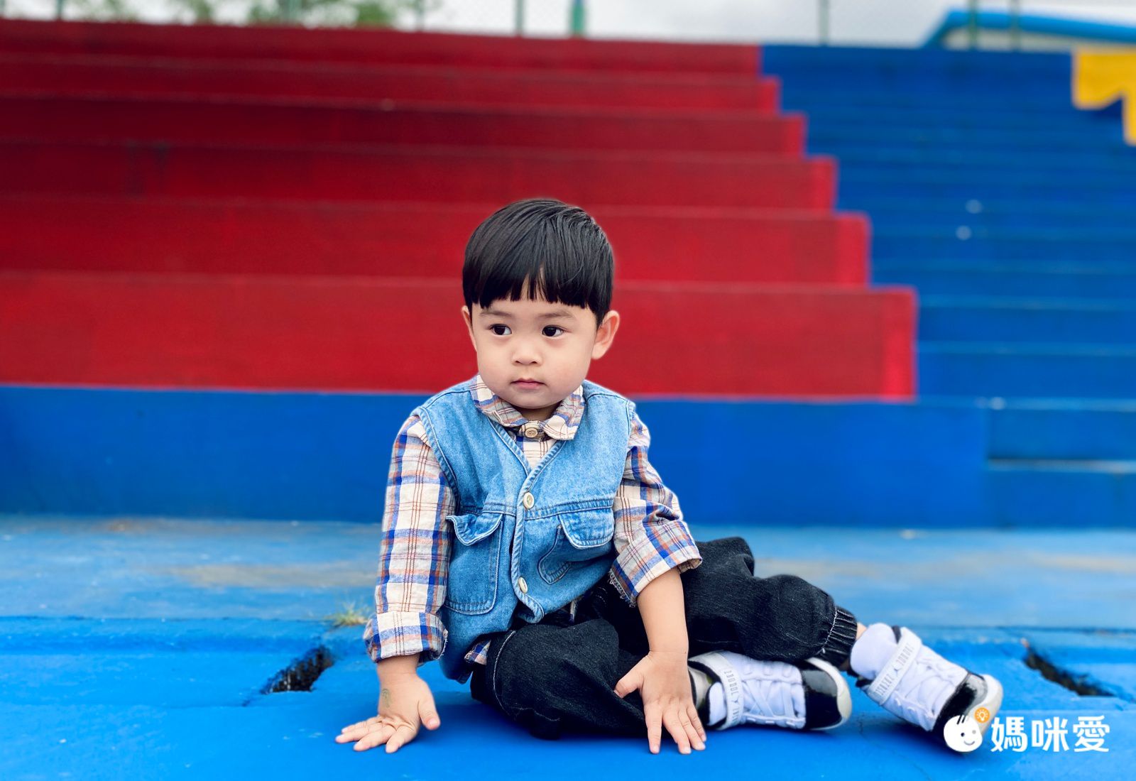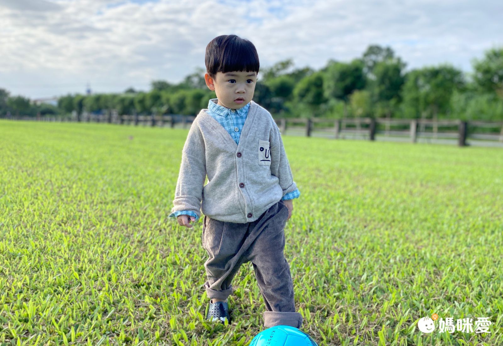 子惟(93公分/14公斤,著用100cm)穿上之後好亮眼