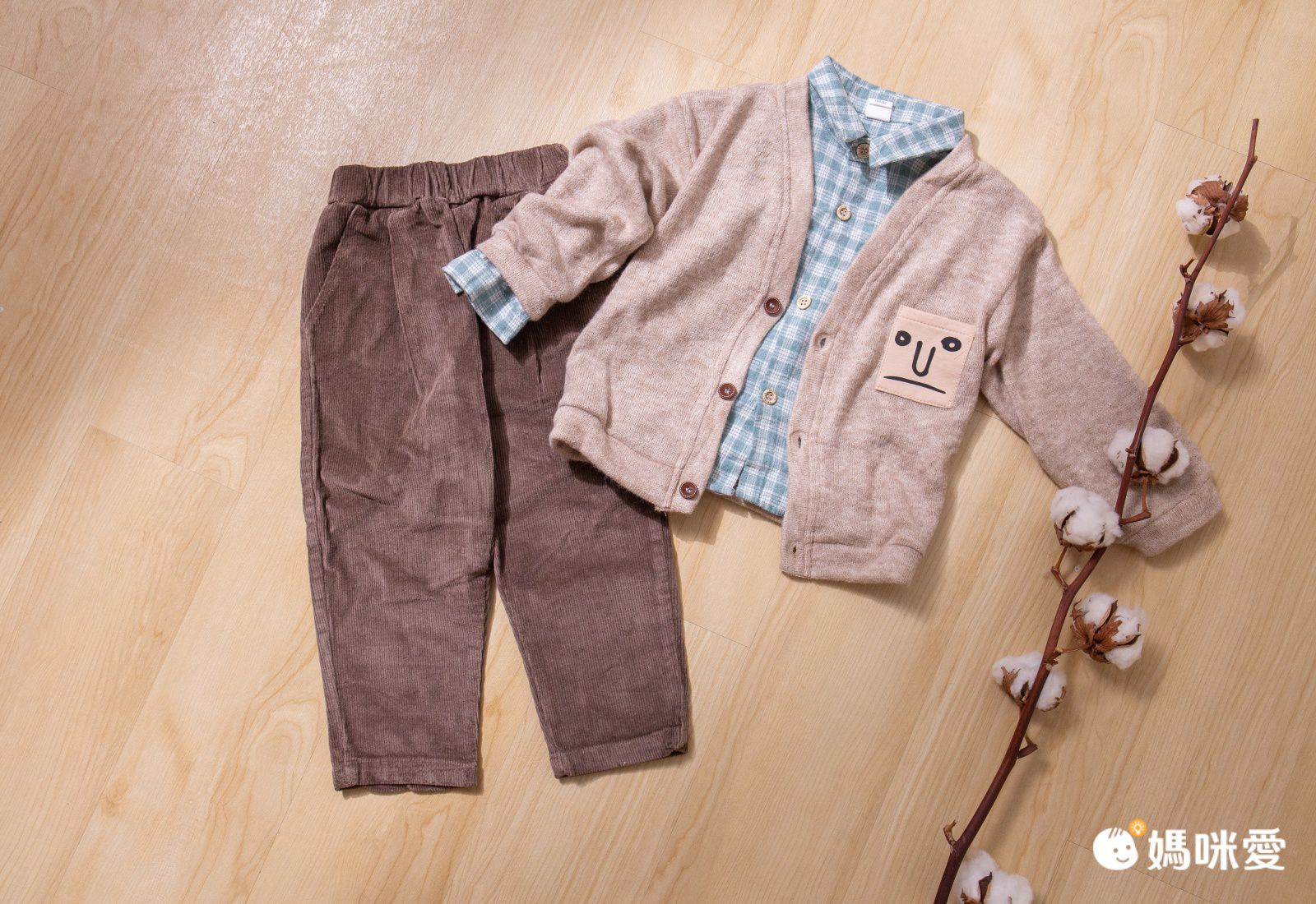 燈芯絨褲子加上開襟針織衫,秋日感十足