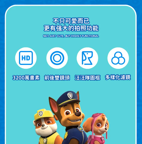 「沒有困難的工作 只有勇敢的狗狗!」內建 16 種汪汪隊相框,好拍又好玩!激發孩子創造力 (因為是用相機錄影,所以有雜訊影響畫質,但實際的相框飽和度很足夠,媽咪可以參考下方實際的拍攝照片)
