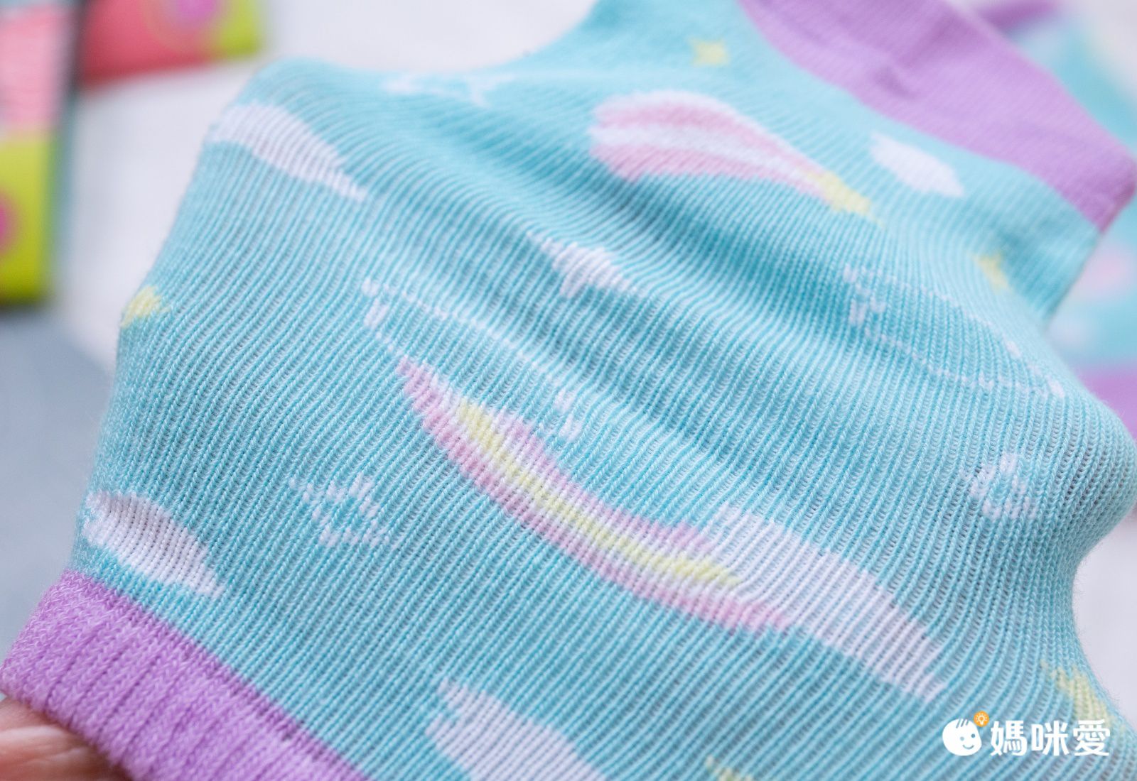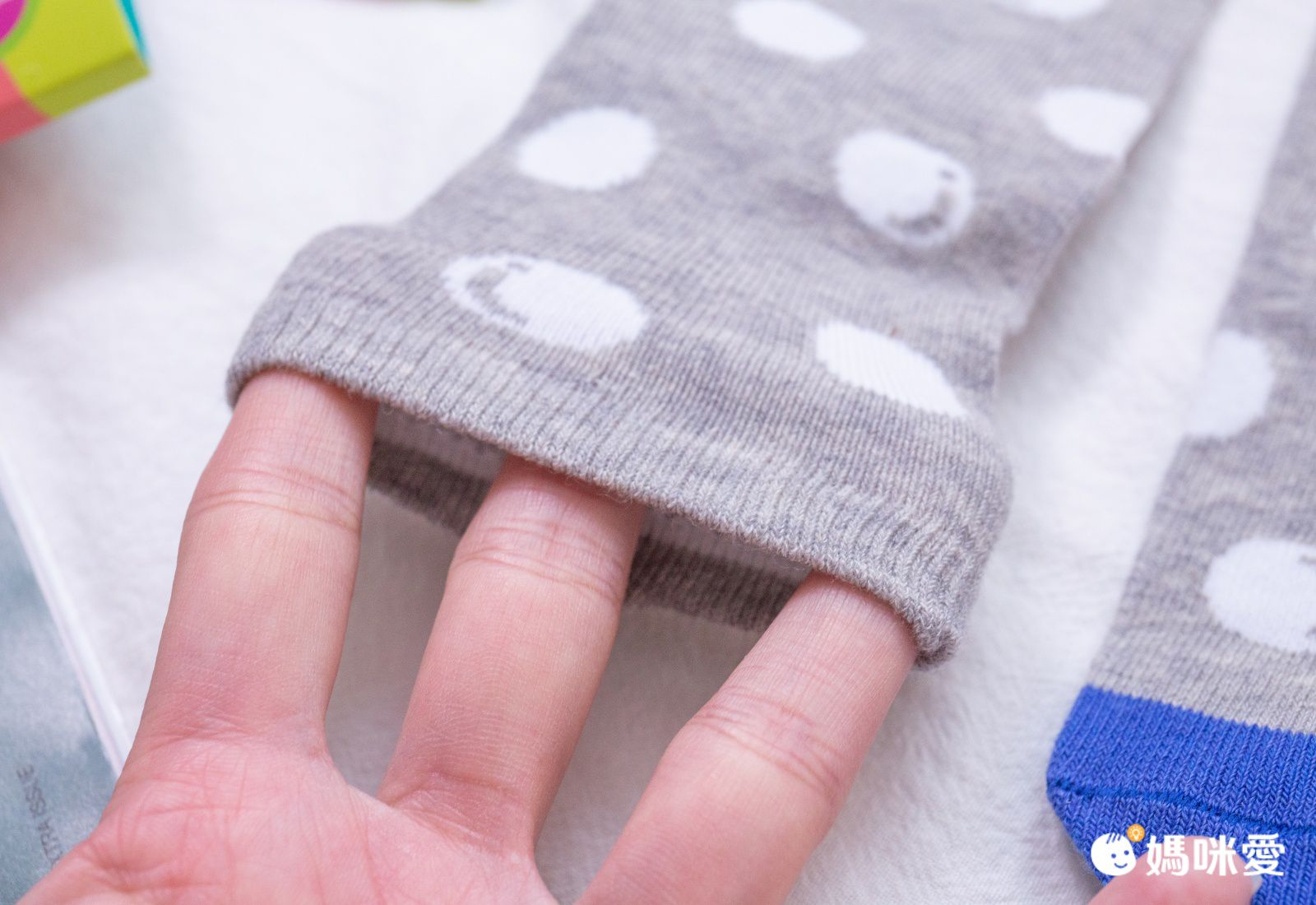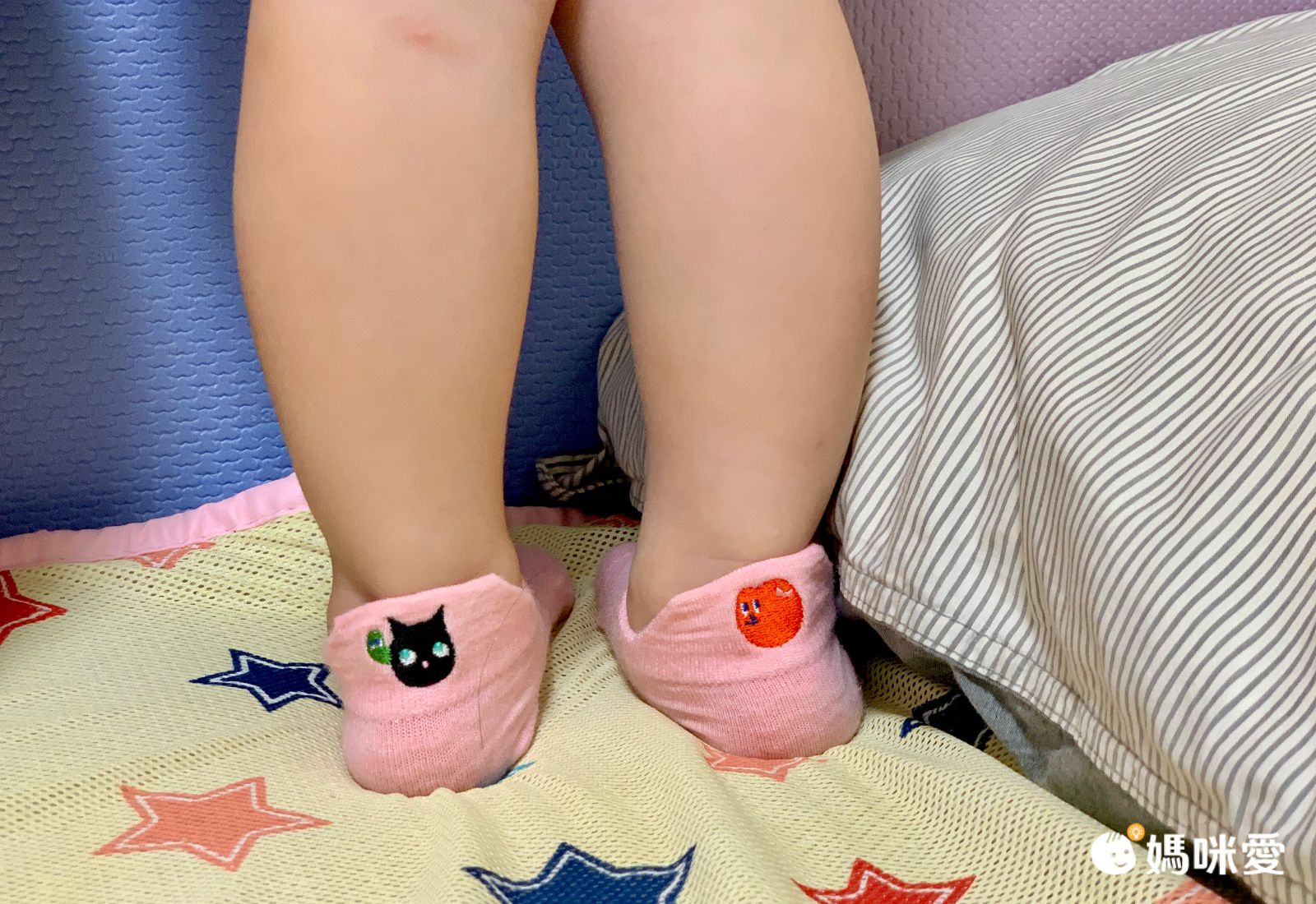 襪子材質摸起很舒服、聞起來沒有異味、紜媽咪很放心的讓紜紜試穿