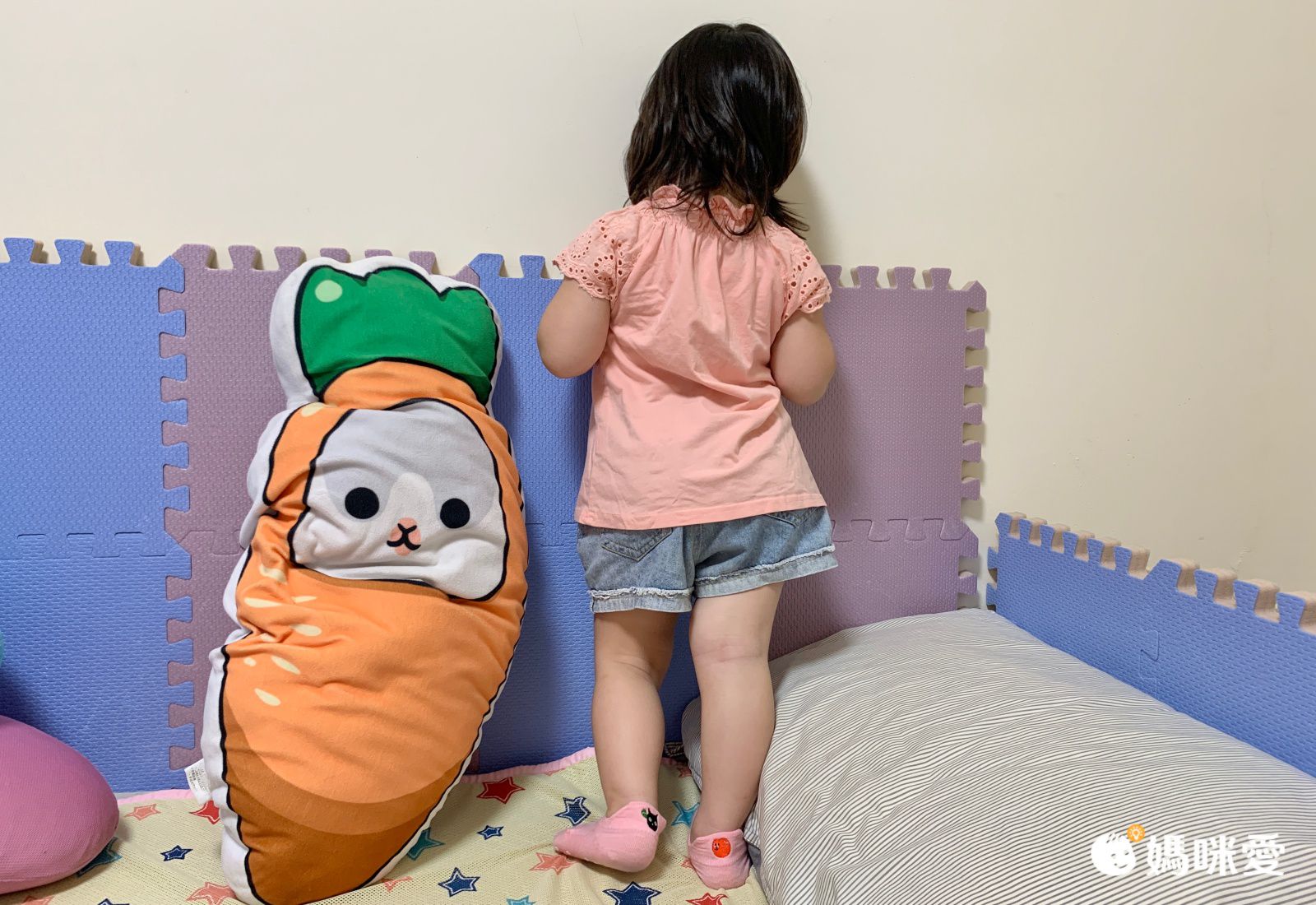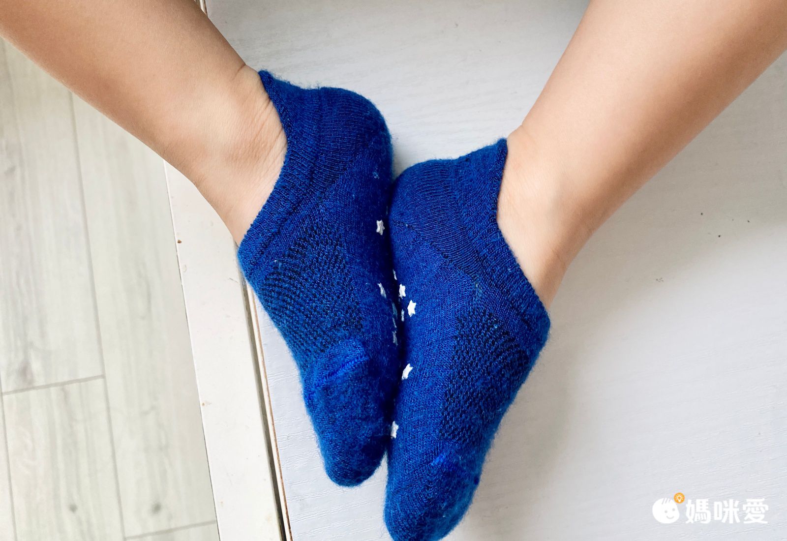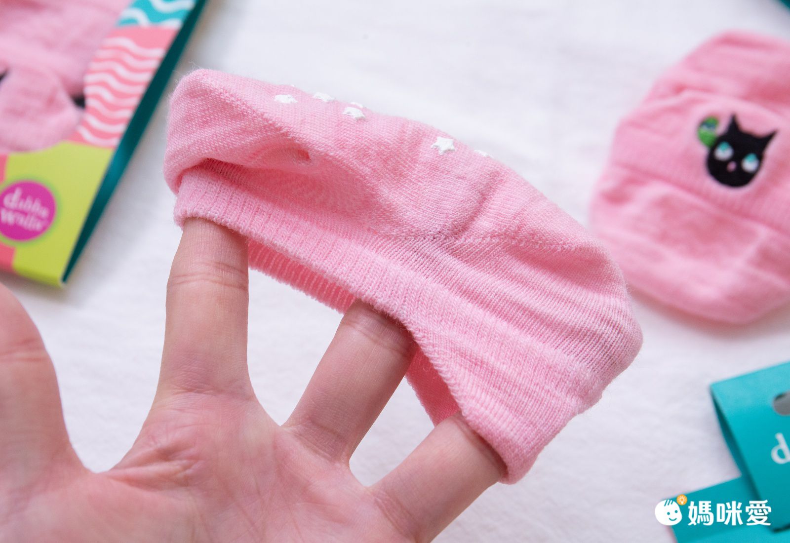 襪子材質摸起很舒服、聞起來沒有異味、紜媽咪很放心的讓紜紜試穿